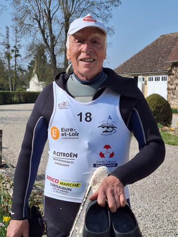 BEZAULT Bernard 44 ' 28 " V3 , arrivé 1 er de sa catégorie, nage avec support