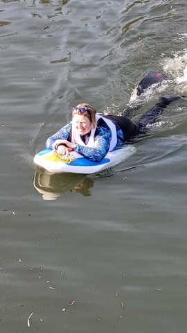 DURAND Claire 53 ' 51 " V2 , arrivée 2ième de sa catégorie, nage avec support
